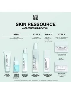 The intense moisturizing formula of this lightweight gel cream is suitable for normal to combination skin types. Its airy texture is quickly absorbed for a refreshing burst of moisture, instantly revealing your skin’s natural glow. Skin is soothed, plumped, and balanced for up to 72-hours, relieving visible signs of stress. Givenchy’s Ressource Skincare line was created with a focus on biocompatibility.