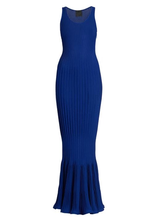 This rib-knit maxi dress by Givenchy is designed with a fitted bodice and flared skirt hem.