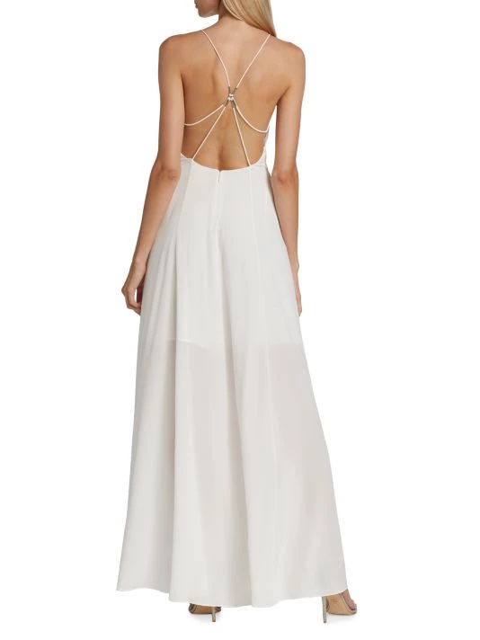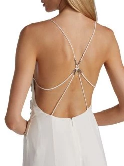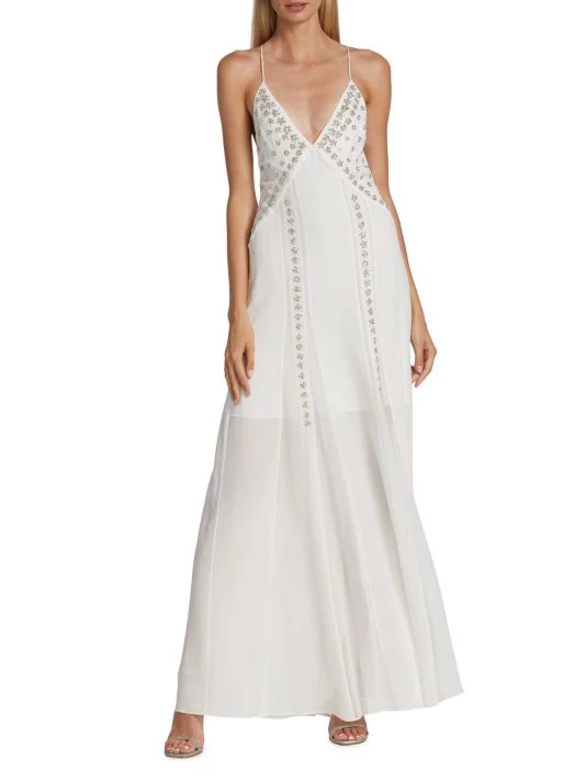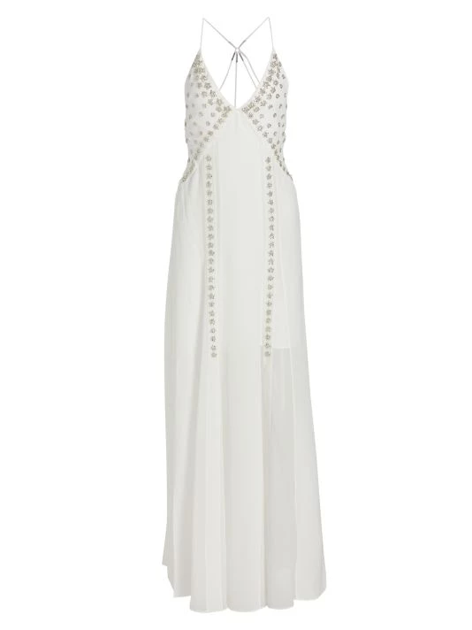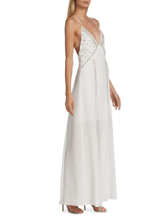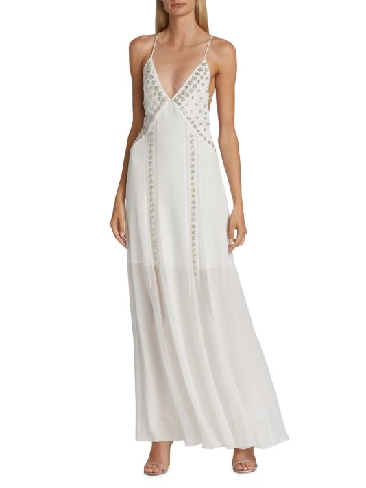 Givenchy’s sleeveless silk gown boasts a floral crystal-embroidered front and strappy open back.