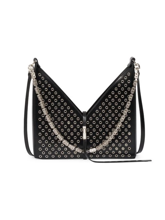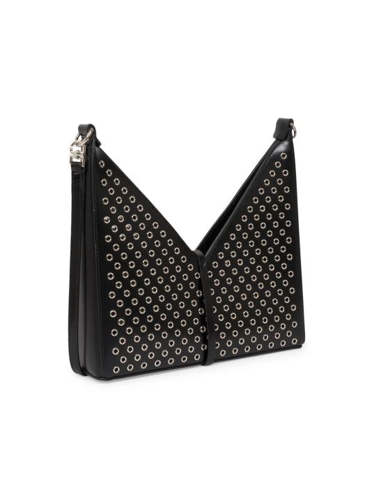 An artistic cut out leather shoulder bag that takes you from day to night.