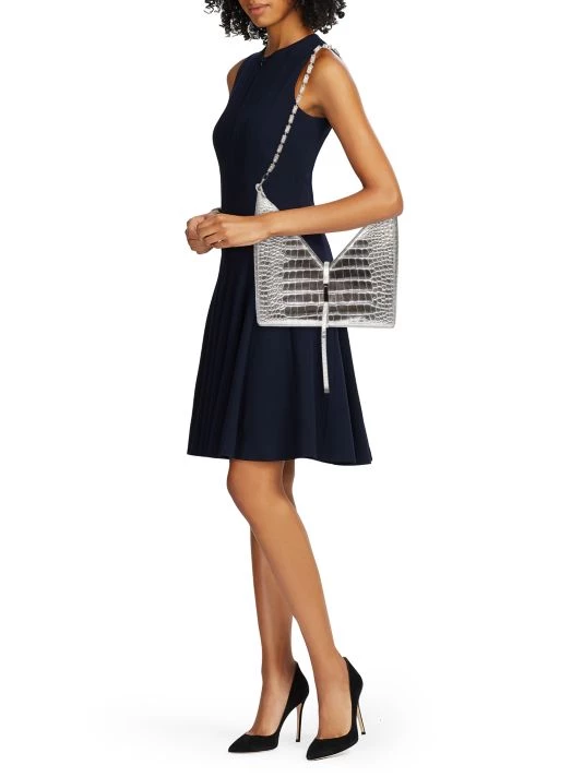 An artistic cut out leather shoulder bag that takes you from day to night.