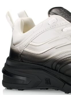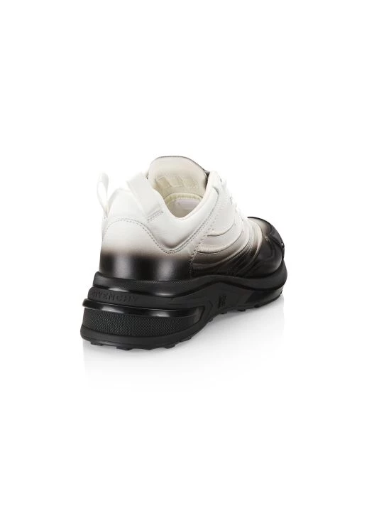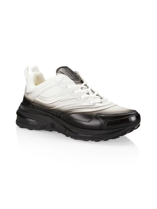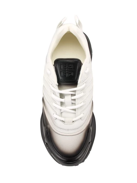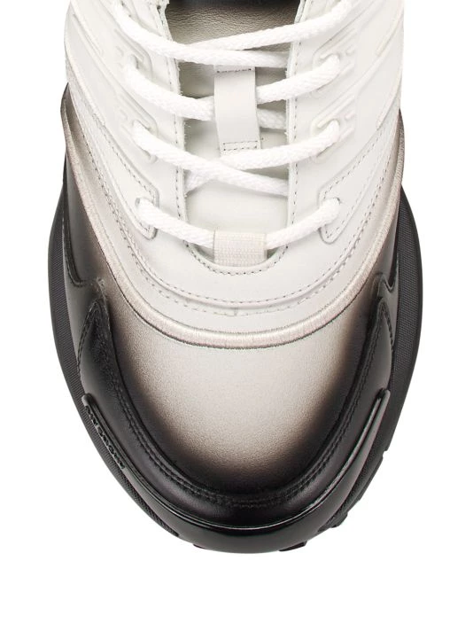 Leather lace-up sneakers designed with a sculpted rubber sole accented with spray paint-style treatment.