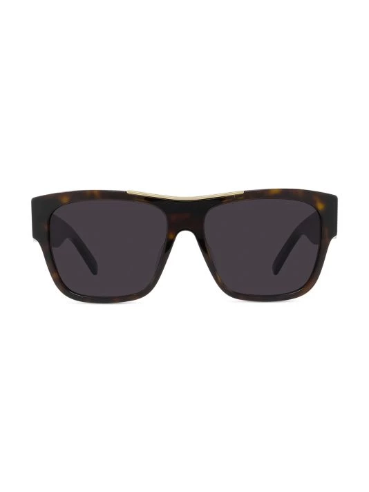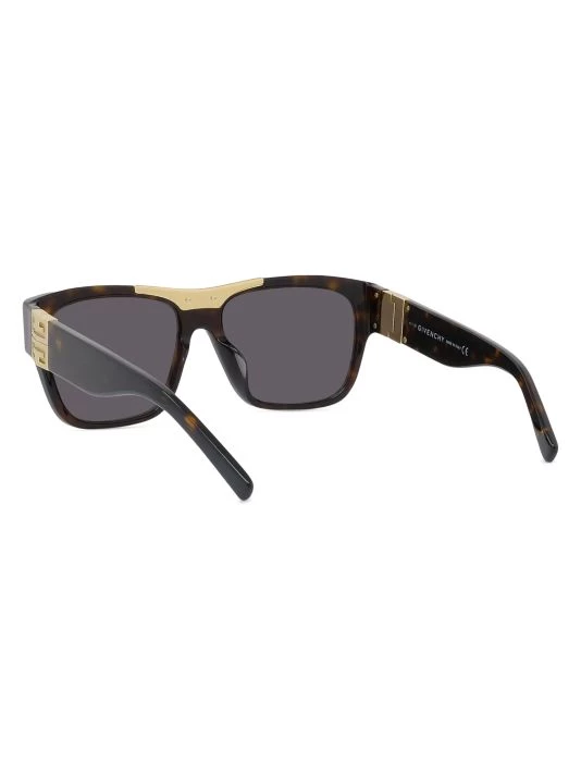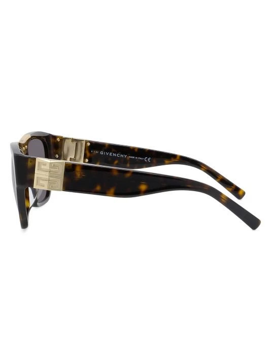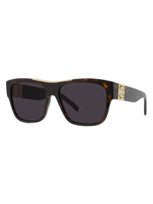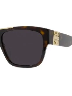 These square shiny Havana sunglasses feature solid smoke lenses. Signature Givenchy monogram G logos adorn the temples.