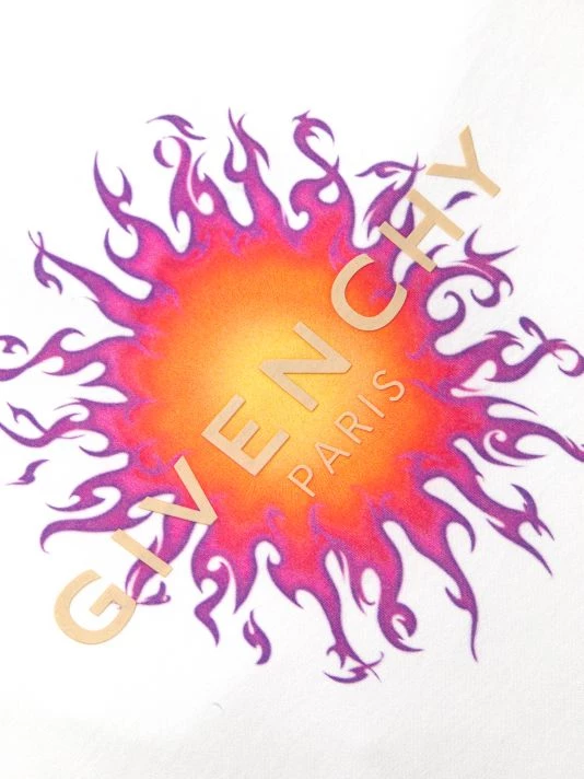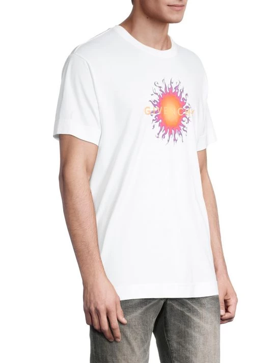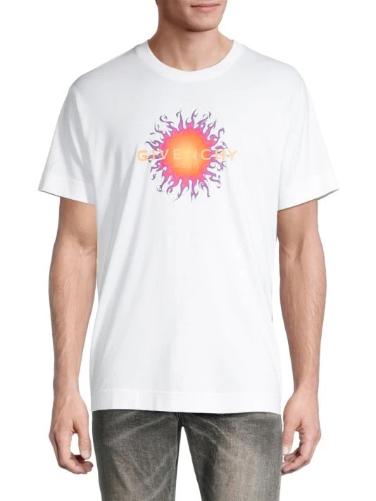 A graphic sun logo adorns the front of this Givenchy T-shirt. The pullover style features a crewneck and short sleeves.