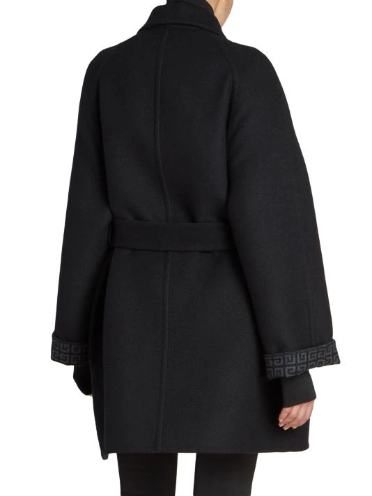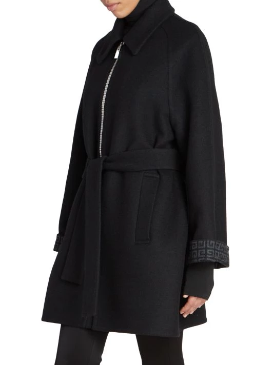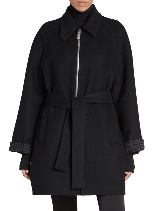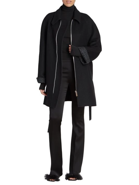 Designed by French house Givenchy, this coat is crafted of a luxurious wool-blend with a logo pattern lining.