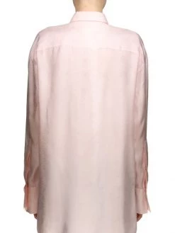 This lightweight silk shirt has an oversized fit and classic collared cut creating a striking piece that can be worn layered atop or tucked in for a blouse-like look.