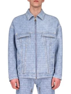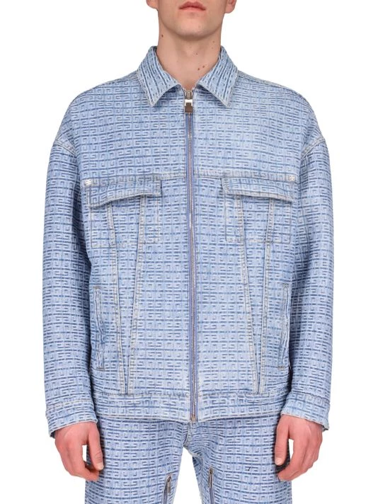 This denim jacket is fastened at the front with a zipper and features chest flap pockets.